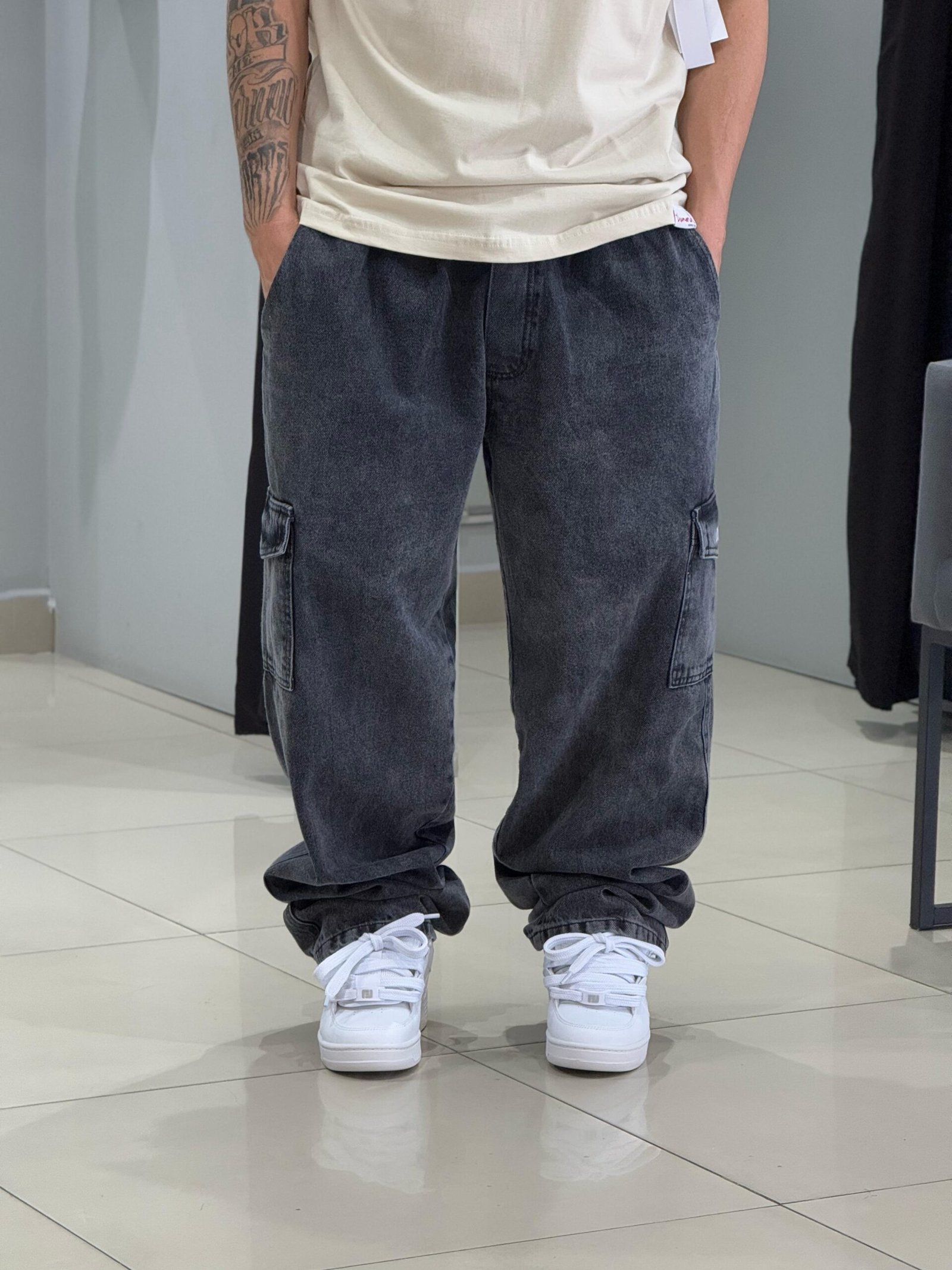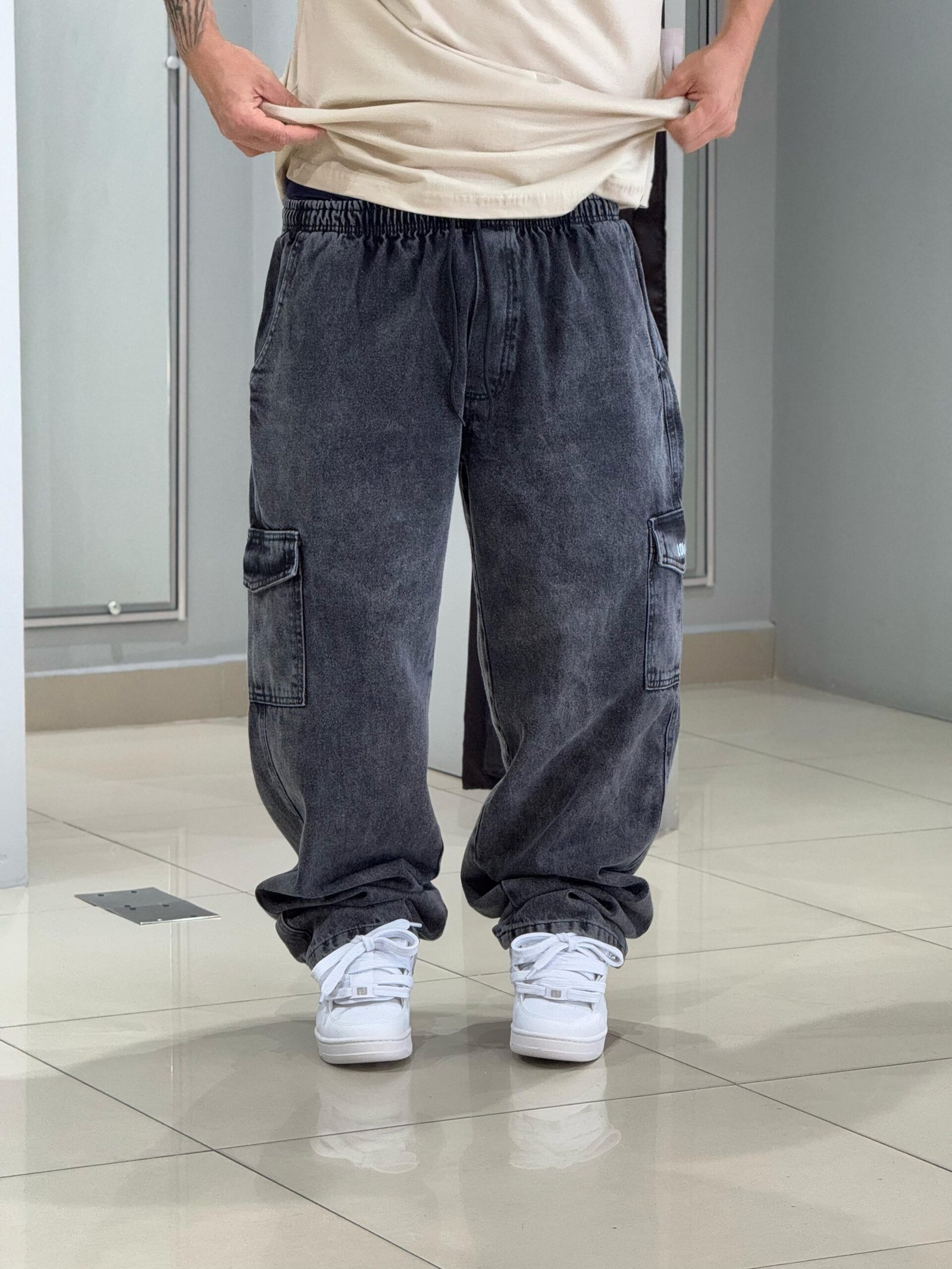 Calça Cargo Loko Jeans Estonado Escuro