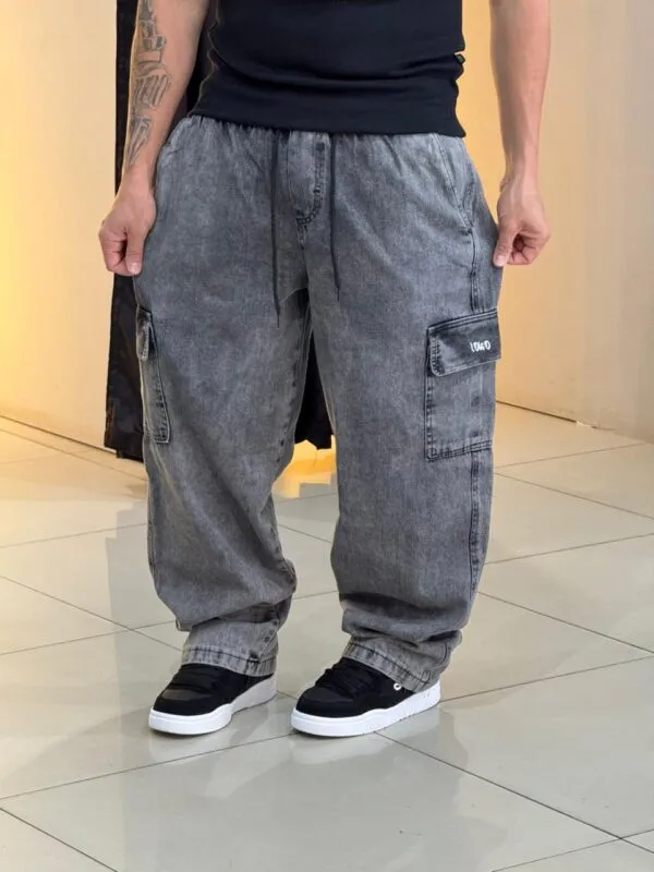Calça cargo Loko tecido em jeans, modelagem confortável e um ótimo caimento.