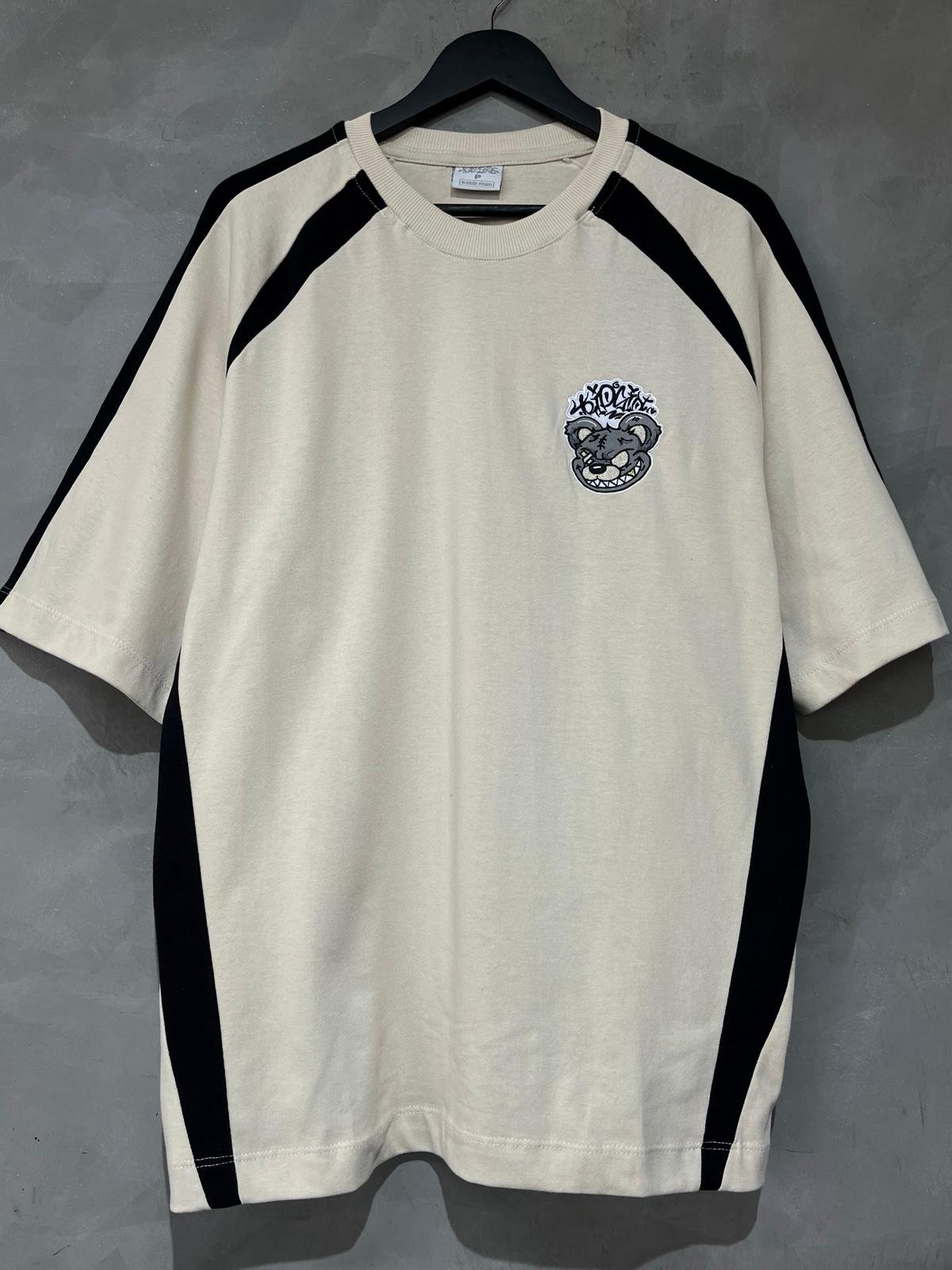 Camiseta Over Malhão Tripside Recorte “Rabisco” Bege/Preto