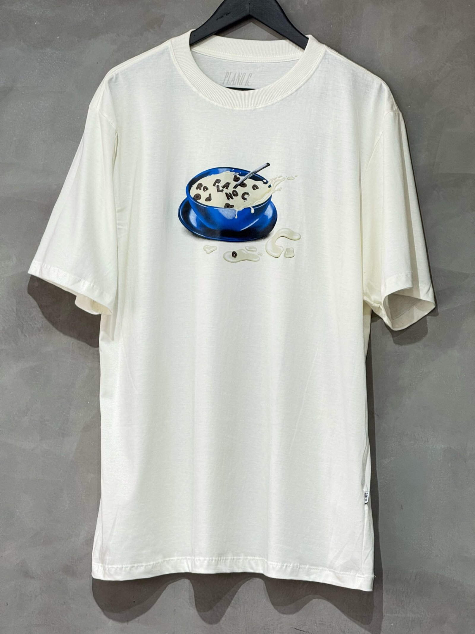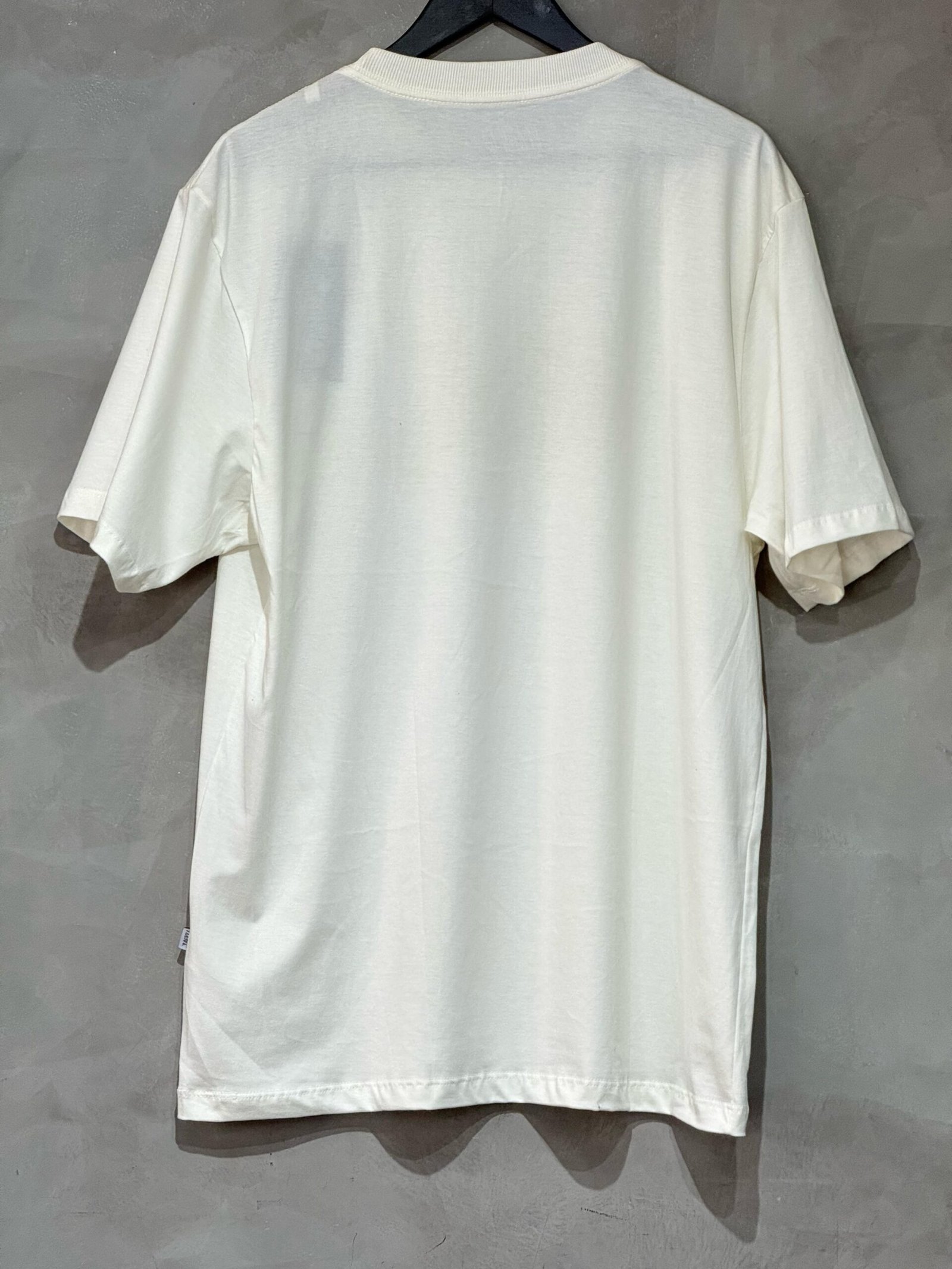 A camiseta possui modelagem oversized, proporcionando um ajuste confortável e descontraído. Seu design mais amplo oferece um caimento solto e fluído, com ênfase na amplitude nos ombros e no tórax. A gola de 2 cm em ribana canelada confere um toque estiloso.