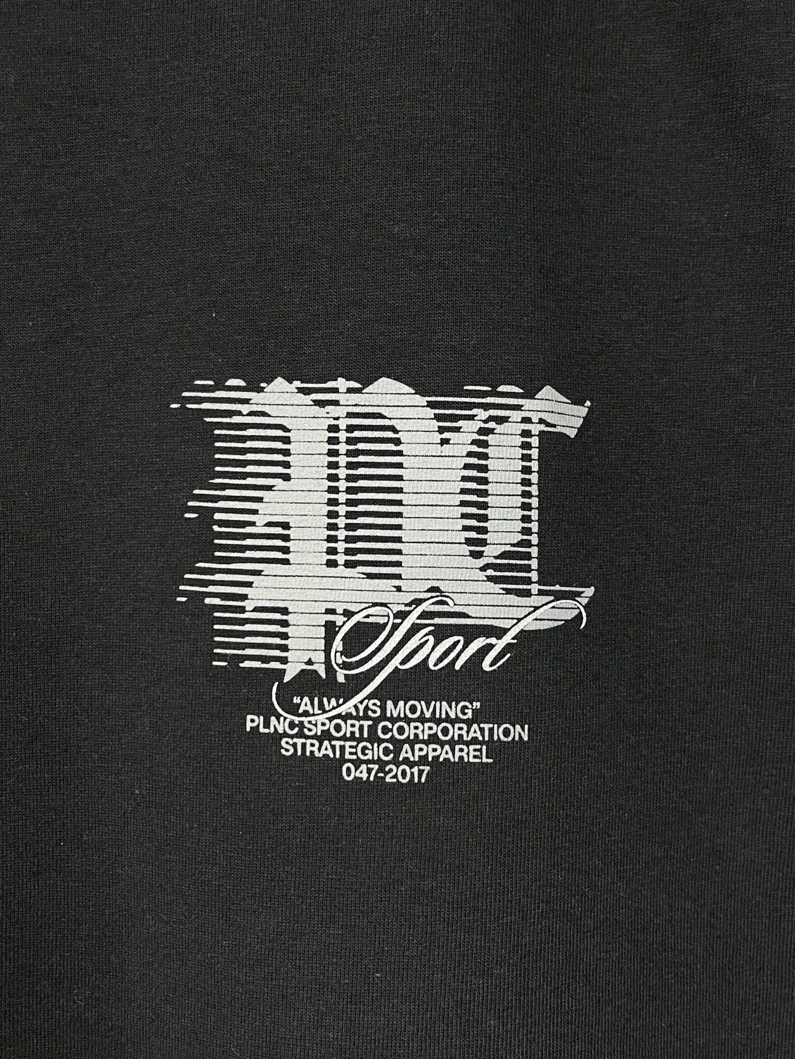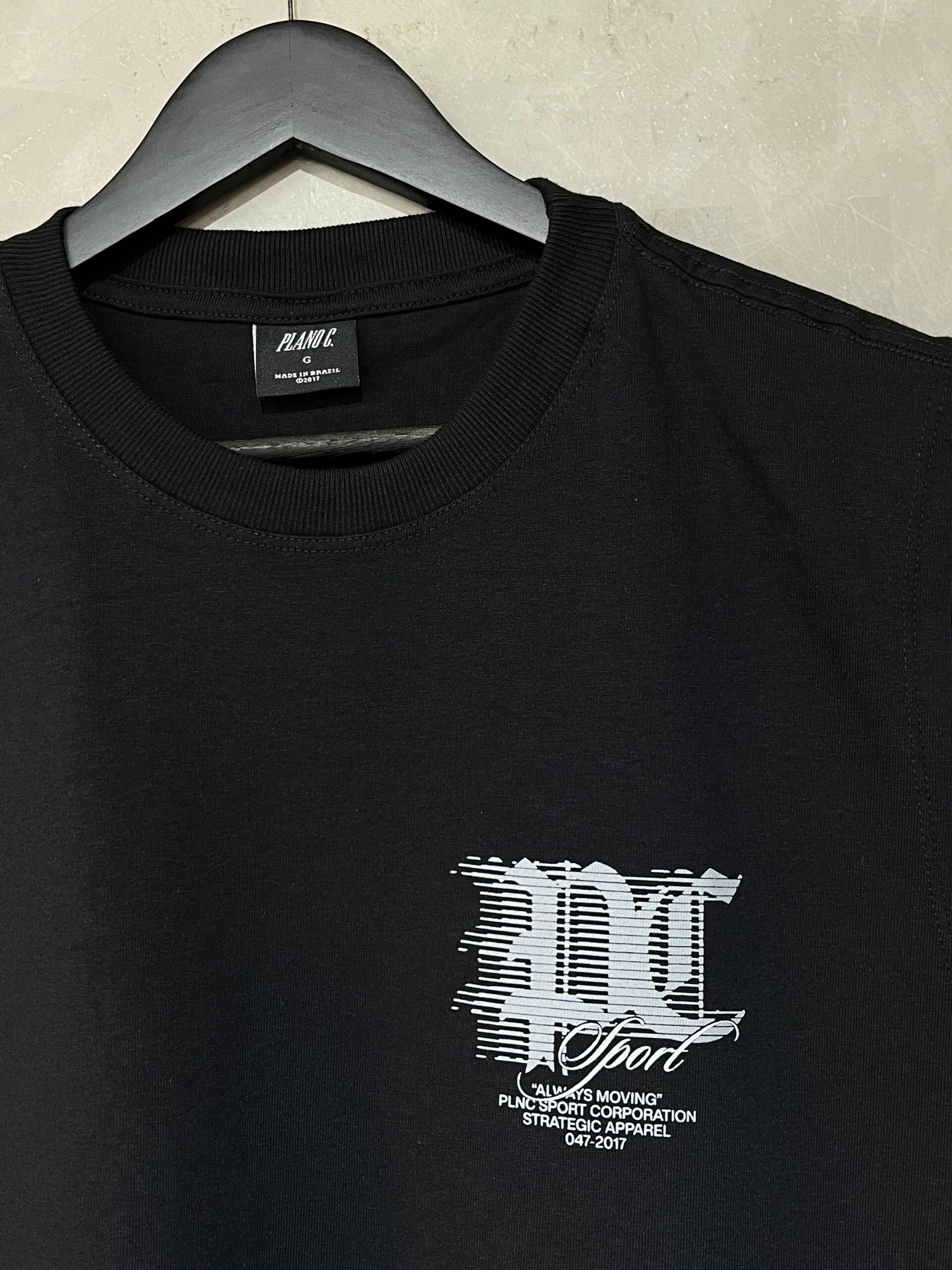 Bordado discreto no lado esquerdo do peito e etiqueta aplicada com cuidado na lateral inferior.